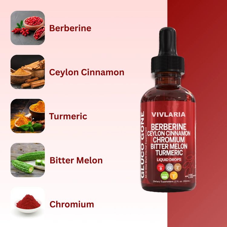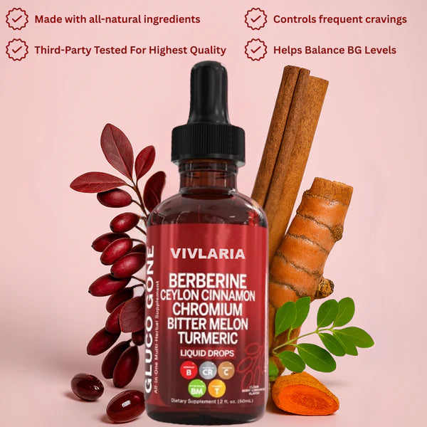 Vivlaria is a dual-action liquid blend that supports healthy blood sugar by improvinginsulin sensitivityand signaling theliverto reduce excess glucose output. It combines berberine HCl, Ceylon cinnamon, chromium, bitter melon, turmeric, gymnema, glucomannan, moringa, Panax ginseng, and ACV—formulated for fast absorption.